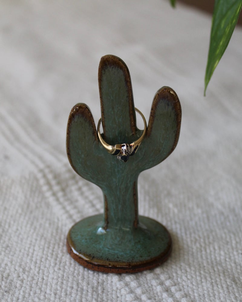 Bring a touch of the desert to your dresser or nightstand with this handmade ceramic saguaro ring holder. Sculpted in the shape of an iconic cactus, each piece is one-of-a-kind—designed to hold your rings securely on its branches.